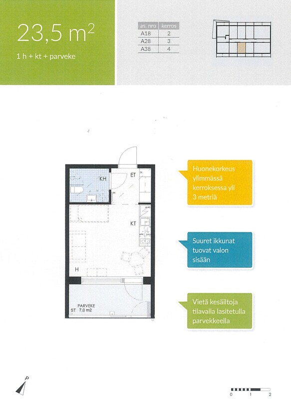 | Lisätietoja: | Autopaikka erillisen sopimuksen mukaan, 20 € / kk. |